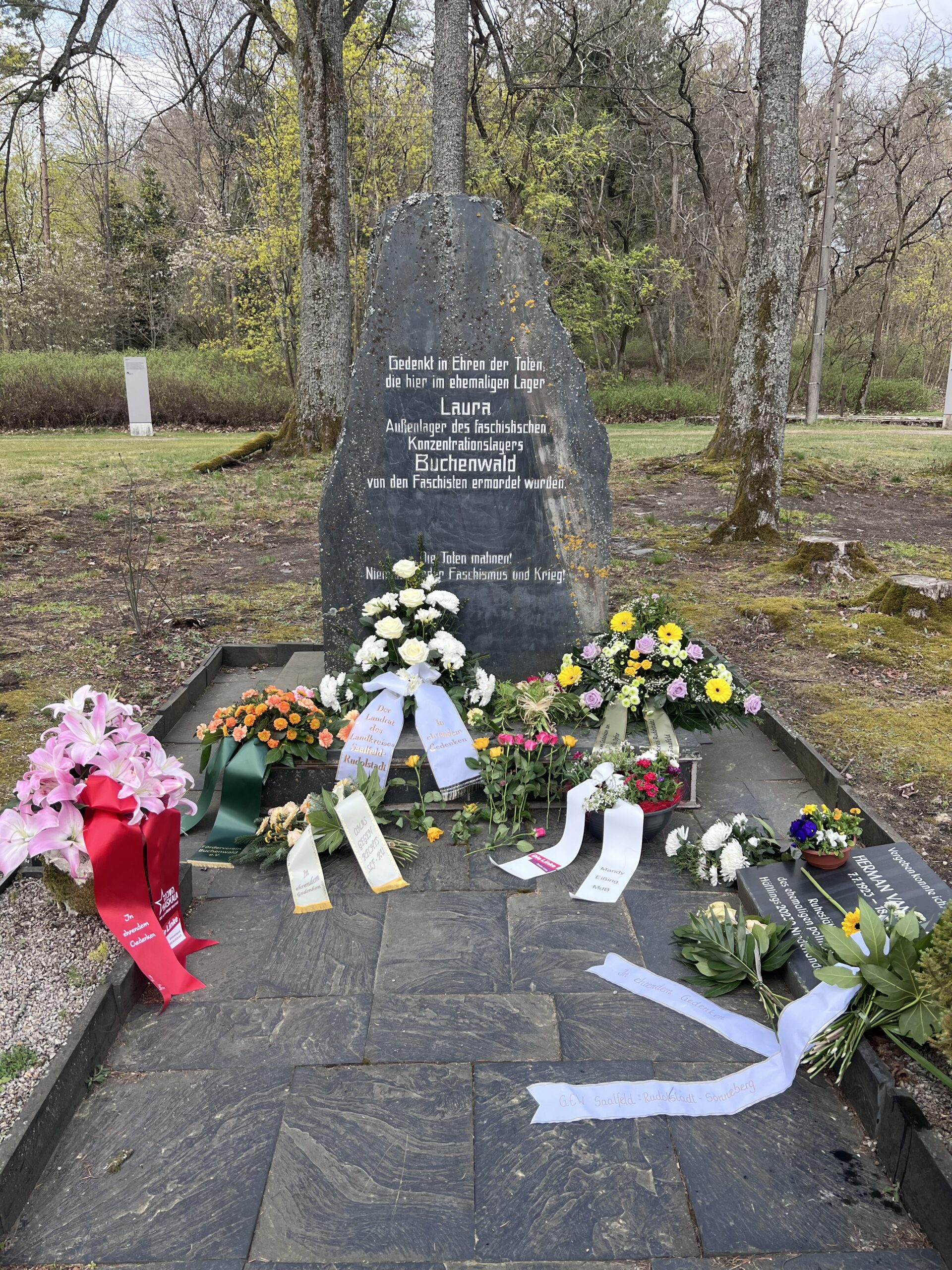 Menschen aus dem Haskala und dem Kreisverband der Linken Saalfeld-Rudolstadt nahmen heute an der offiziellen Gedenkveranstaltung anlässlich des 81. Jahrestages der Befreiung des ehemaligen KZ-Außenlagers „Laura“ bei Lehesten teil. Tatsächlich befreit wurde das ehemalige KZ-Außenlager durch die Alliierten am 13.04.1945.